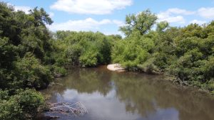 Possui 1,5 km de margem ao longo do arroio Chamamé, com águas limpas e tranquilas que formam uma grande lagoa natural — perfeita para lazer, pesca ou projetos turísticos. Além disso, há dois açudes que complementam o sistema hídrico da área.
